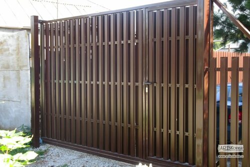 После установки столбов и петель приступите к установке штакетников на воротах, аналогично способу установки на заборе. Обратите внимание на точность и ровность установки для обеспечения правильного функционирования ворот.