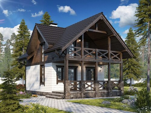 Проект 2: Каркасный дом в стиле загородного шале с просторной террасой