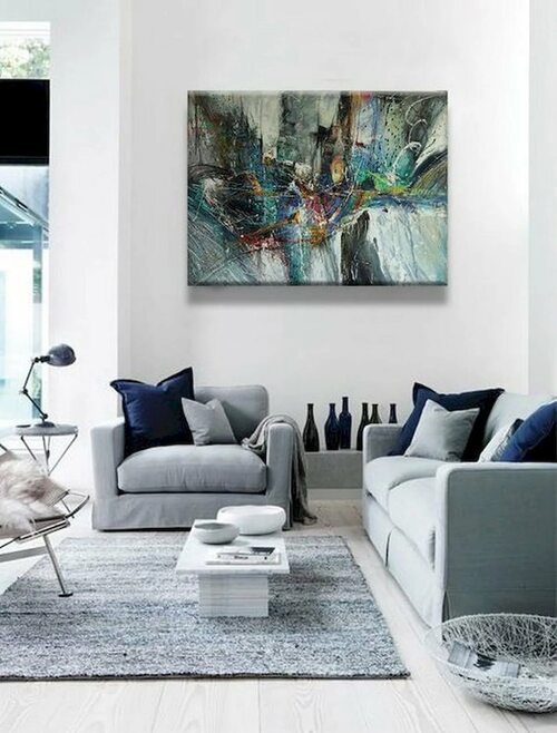 Если вы хотите добавить оригинальности и динамики в серый интерьер, то обратите внимание на многосоставные картины. Они состоят из нескольких частей, которые можно расположить по своему усмотрению. Такие картины создают интересные композиции и добавляют в помещение игру света и тени.