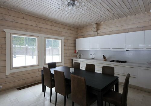 Имитация бруса обходится гораздо дешевле, чем использование настоящего дерева. Это позволяет сэкономить значительную сумму денег при обустройстве кухни.