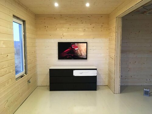 [Вставьте здесь фотографии, которые иллюстрируют обшивку дома внутри имитацией бруса]