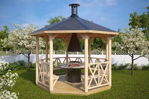Если вы предпочитаете более открытое пространство, то беседка-павильон с мангалом - отличный выбор. Она имеет открытую конструкцию с крышей, которая защищает от солнца и небольших осадков. Такая беседка идеально подойдет для жаркого летнего времени, когда хочется наслаждаться открытым небом и свежим воздухом. Мангал может быть расположен как внутри, так и снаружи беседки, в зависимости от ваших предпочтений.