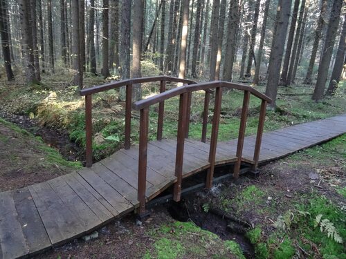 Деревянные мостики выглядят очень естественно и органично в садовом ландшафте. Они могут быть выполнены из бруса или досок, их можно покрасить или оставить в естественном виде.