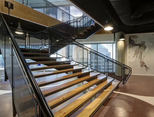 3. Фото 3: Модерн парадная лестница в современном музее. Стеклянные ступени и минималистичный дизайн создают впечатляющий контраст с классическими зданиями.