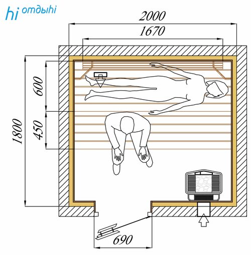 Расположение полков должно учитывать вентиляцию парильной комнаты. Посетители должны иметь возможность свободного доступа к воздуху и не должны чувствовать дискомфорта от недостатка свежего воздуха.