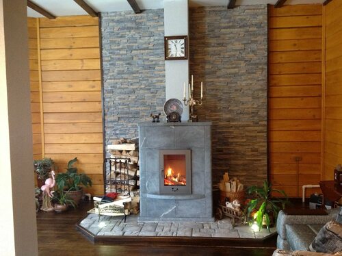 Если хотите добавить в интерьер своего дома нотку природы, использование натурального камня для отделки стен вокруг печи является отличным вариантом. Камень придает помещению элегантность и уникальность, а также обладает прекрасными теплоизолирующими свойствами.