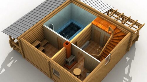 Если у вас ограниченное пространство на участке, то этот проект станет идеальным решением. Мини-баня с бассейном позволяет создать комфортное место для отдыха и релаксации даже на небольшой площади.