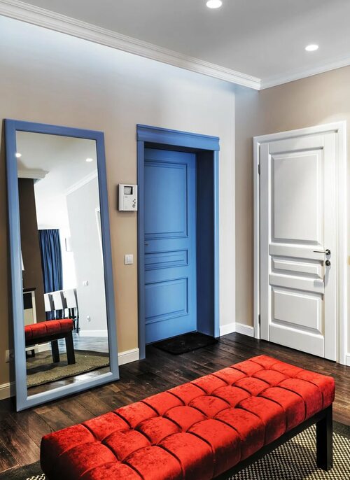 Синие двери в интерьере квартиры - это стильное и необычное решение, которое придаст вашей квартире уникальность и особый шарм. Выбирайте оттенок синего, который подходит вашему интерьеру, и создавайте гармоничное пространство, полное спокойствия и элегантности.