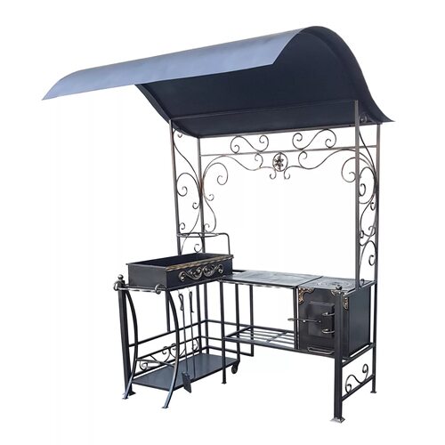 Крыша из металла обеспечивает надежную защиту от дождя и солнца. Вы можете наслаждаться приготовлением шашлыка даже в случае непогоды.