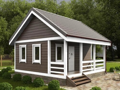 Если вы любите скандинавский стиль, то этот проект станет идеальным выбором для вас. Домик выполнен в светлых тонах с использованием натуральных материалов, что создает уютную и радостную атмосферу. Внутри дома расположена просторная гостиная с камином, спальня, ванная комната и кухня. Особенностью этого проекта является большая веранда, где можно наслаждаться свежим воздухом и прекрасным видом на природу.