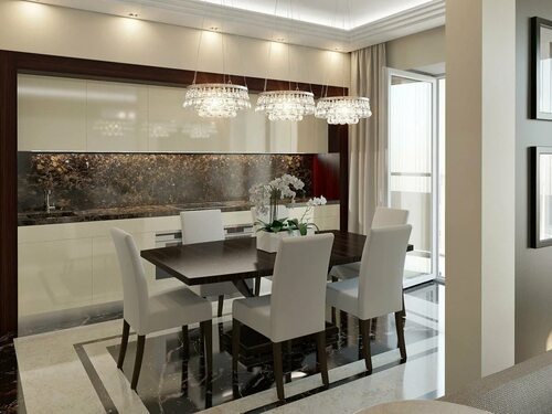 Также не забудьте о технологических новинках, которые могут сделать вашу кухню-гостиную-столовую еще более функциональной и комфортной. Рассмотрите возможность установки интегрированной техники, такой как духовой шкаф, холодильник или посудомоечная машина.