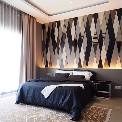 Помимо цвета, вы также можете обратить внимание на текстуру или отделку стены. Например, использование камня, кирпича или дерева может придать спальне естественность и уют.
