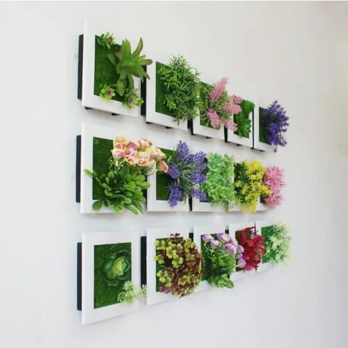Создайте настоящий вертикальный сад на своей стене, используя разнообразные искусственные цветы. Это отличный способ добавить зелень и яркие краски в интерьер, особенно если у вас нет возможности выращивать реальные растения.