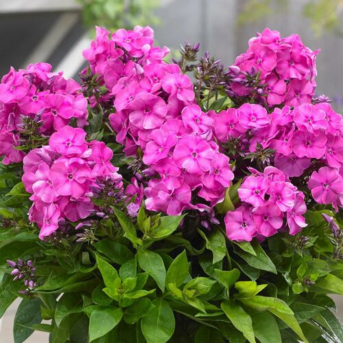 Растение цветет с середины лета до начала осени, радуя своими красками и ароматом. Цветки Флокса Бамбини Примадонна имеют маленький размер, но их множество создает эффектную цветущую клумбу или границу.