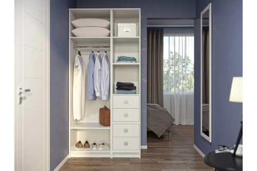 Встроенный узкий шкаф - отличное решение для спален с небольшими размерами. Он может быть интегрирован в стену или установлен в нишу, что позволяет максимально использовать доступное пространство. Встроенный шкаф может быть выполнен на заказ, чтобы полностью соответствовать вашим потребностям и предпочтениям.