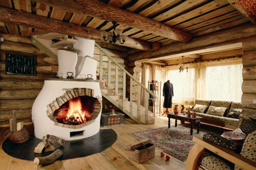 Интерьер дачного домика с печкой обычно выполнен в стиле русской или скандинавской традиции. Основными элементами интерьера являются деревянная мебель, теплые оттенки и мягкие текстильные элементы.
