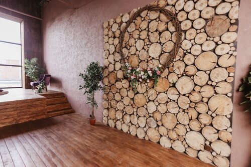 Спилы дерева на стене внутри помещения могут стать ярким акцентом и привлечь внимание гостей. Вы можете использовать их для создания различных композиций: