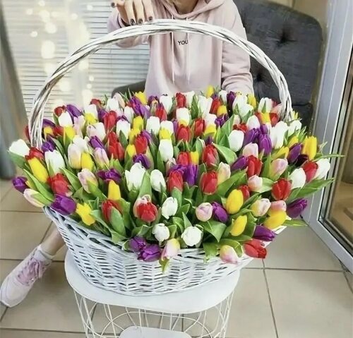 Выбор корзинки и тюльпанов