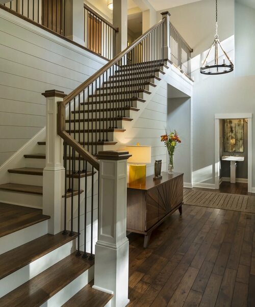 Лестницы из натурального дерева являются классическим и популярным вариантом. Они придают интерьеру загородного дома теплоту и природность. Вы можете выбрать лестницу из дуба, бука или других видов дерева, которое будет гармонировать с общим стилем вашего дома. Фото ниже представлены различные варианты лестниц из натурального дерева: