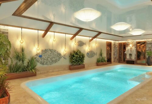Освещение является важным элементом в интерьере сауны с бассейном. В сауне можно использовать диммируемое освещение, чтобы создать расслабляющую атмосферу. В бассейне можно установить подводные светильники, которые придадут воде эффект иллюминации. Также не забывайте о декоративных акцентах, таких как растения, камни или водопады, которые помогут создать атмосферу природы и спокойствия.