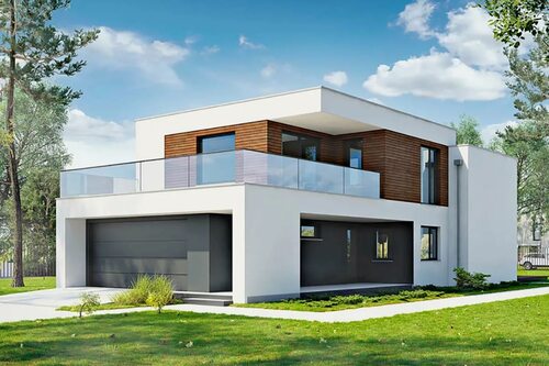 Внешний вид двухэтажного дома с плоской крышей может быть украшен различными элементами, такими как большие окна, балконы или террасы. Используйте современные материалы, такие как стекло и металл, чтобы придать зданию современный и стильный вид.