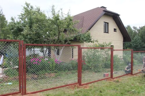 Классический забор из рабицы представляет собой простую конструкцию, состоящую из вертикальных столбов и горизонтальных прутьев. Этот вариант забора идеально вписывается в любой ландшафт и устойчив к различным погодным условиям. Фотография: