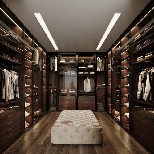 Для вдохновения предлагаем вам рассмотреть несколько интересных идей дизайна спальни с гардеробной комнатой: