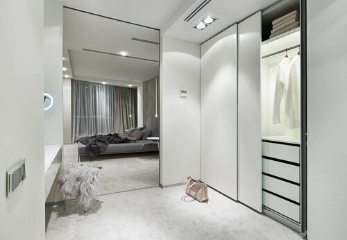 Спальня-студия - это современное решение для малогабаритных помещений, где спальная зона и гардероб объединены в одном пространстве. Это позволяет сэкономить место и создать эффективную организацию пространства.