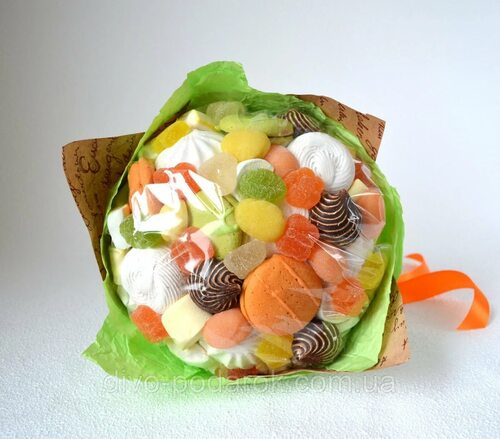 Если вы хотите создать более простую композицию, то букет из мармеладных конфет – это отличный вариант. Возьмите разные формы и вкусы мармеладных конфет, нанизывайте их на строительные шпажки или палочки для шашлыка и соберите в букет. Добавьте украшения, такие как ленты или бантики, чтобы придать букету особый шарм.