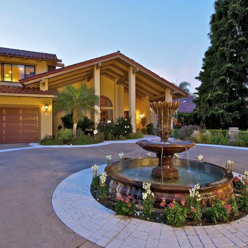 Фонтан должен гармонично сочетаться с архитектурой вашего дома. Например, для классического стиля дома подойдет фонтан с колоннами и статуей, а для современного стиля более минималистичный и геометрический фонтан.