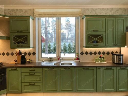 Зеленая палитра является отличным выбором для кухонного интерьера. Она ассоциируется с природой, свежестью и гармонией, что делает пребывание на кухне еще более приятным. Вы можете выбрать оттенок зеленого, который соответствует вашему вкусу и стилю интерьера. От светлых мятных до глубоких изумрудных оттенков - зеленая кухня из массива дерева будет выглядеть элегантно и стильно.