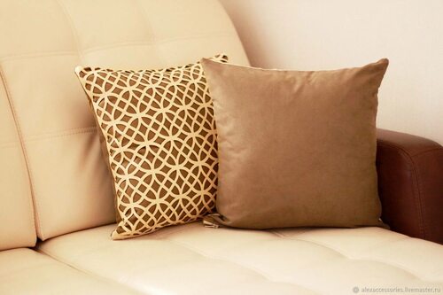 Подушки с пуговицами выглядят очень стильно и элегантно. Они добавляют дивану некую ретро-нотку и придают ему особый шарм. Выбирайте подушки с пуговицами в тон или контрастную цветовую гамму с бежевым диваном.