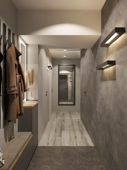 Хорошее освещение является одним из ключевых аспектов прихожей. В панельных домах, где окна могут быть небольшими, важно обеспечить хорошую и равномерную освещенность. Можно использовать потолочные светильники, направленные светильники или настенные светильники. Также зеркала могут сделать прихожую более просторной и светлой, отражая свет и создавая ощущение глубины.