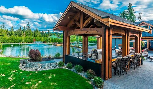 Павильон или навес с крышей помогут защитить вас от погодных условий и создадут уютную атмосферу. Добавьте мягкую мебель, чтобы сделать пространство еще более комфортным.