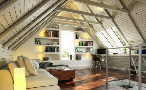 Мансарда с двускатной крышей – это идеальное место для создания уютной библиотеки. Здесь можно разместить книжные полки, удобные кресла и столы для чтения. Вы сможете создать атмосферу, идеальную для уединения и погружения в мир книг.