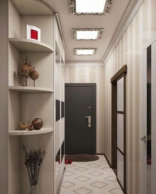 Используйте вертикальные полосы на стенах, чтобы визуально удлинить узкий коридор. Выбирайте полосы светлых оттенков, чтобы создать ощущение высоты и простора.