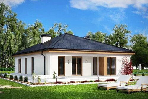 Этот проект представляет собой одноэтажный дом с простыми линиями и минималистичным дизайном. Шатровая крыша добавляет особый шарм и уникальность этому дому. Фасад можно выполнить в нейтральных тонах, чтобы подчеркнуть его современный стиль. Внутри вы найдете просторные комнаты с практичной планировкой, идеально подходящие для современной семьи.