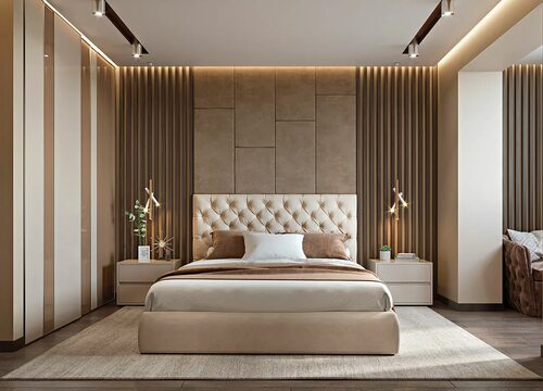 Цвет и текстура мягких стеновых панелей должны гармонировать с остальным интерьером спальни. Рекомендуется выбирать пастельные и нейтральные оттенки, которые способствуют созданию спокойной и расслабляющей атмосферы.