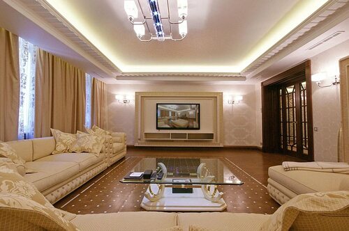 Минималистический дизайн подходит для тех, кто предпочитает простоту и чистоту форм. В большом зале можно использовать нейтральные цвета, гладкие поверхности и минимум декоративных элементов. Это создаст ощущение простора и позволит акцентировать внимание на других деталях интерьера, таких как мебель или произведения искусства.