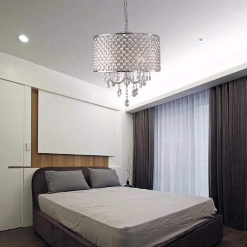 Если вы предпочитаете классический стиль, кристальная люстра станет отличным вариантом. Она придаст вашей спальне роскошный и изысканный вид. Кристаллы будут играть на свету, создавая эффект блеска и мерцания.