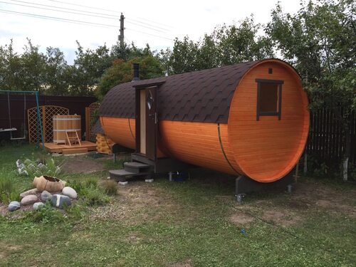 4. Мобильность. Баню бочку можно легко перемещать по участку, что позволяет выбирать наиболее удобное место для ее установки.