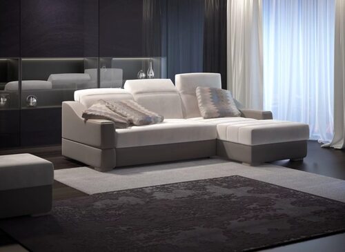 На фото представлен угловой диван Moon в современном интерьере. Его сдержанный дизайн и нейтральные цвета отлично сочетаются с минималистическим стилем, создавая атмосферу спокойствия и гармонии.