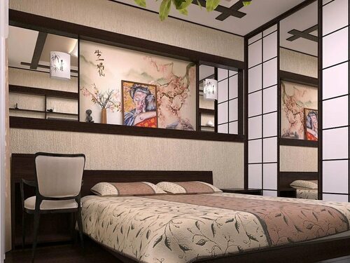 Японский стиль отличается минималистичным подходом к декору и мебели. В спальне в японском стиле следует избегать излишеств и ненужных деталей. Основные элементы мебели должны быть функциональными и простыми по форме. Отдайте предпочтение низким кроватям на платформе или футонам, которые создадут ощущение прикосновения к земле.