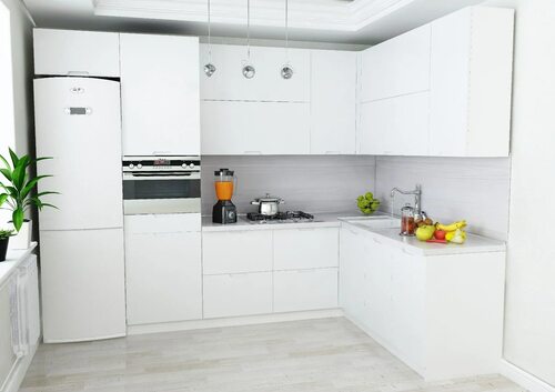 Белый угловой гарнитур идеально впишется в современный минималистический интерьер, где простота и чистота линий являются главными принципами дизайна.