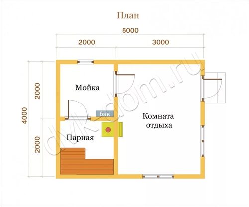 Ниже представлены фотографии проекта бани с отдельной парилкой и моечной для вашего вдохновения:
