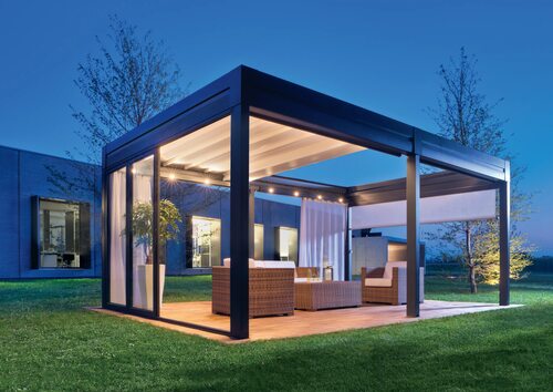 В стиле Модерн популярны нейтральные и приглушенные оттенки. Используйте комбинации серого, белого, черного и небольшие акценты ярких цветов. Это поможет сохранить сдержанность и стильность общего вида беседки.