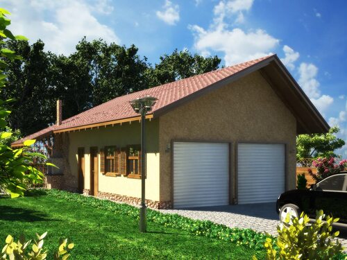 1. Дача с гаражом в классическом стиле: этот вариант подойдет любителям элегантных и изысканных решений. Фасад дома и гаража выполнены в одном стиле, что добавляет гармонии в общий вид.