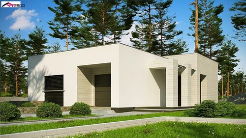 Этот проект предлагает экологически чистый дом, выполненный из газобетона и оборудованный солнечными панелями для генерации электроэнергии. Плоская крыша позволяет установить солнечные батареи, а также создает возможность создания крытой террасы для отдыха и барбекю. Внутри дома использованы натуральные материалы и экологически чистые отделочные материалы.