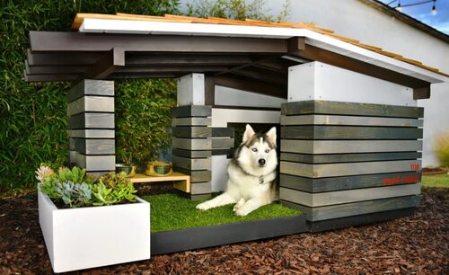 2. Модульная будка на подиуме: Разделите будку на несколько модулей, чтобы создать уникальный дизайн. Установите их на подиуме, чтобы подчеркнуть статус вашей собаки.