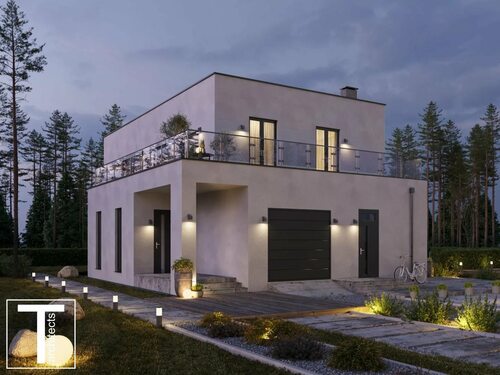 Проект двухэтажного дома с ровной крышей имеет несколько преимуществ, которые можно выделить:
